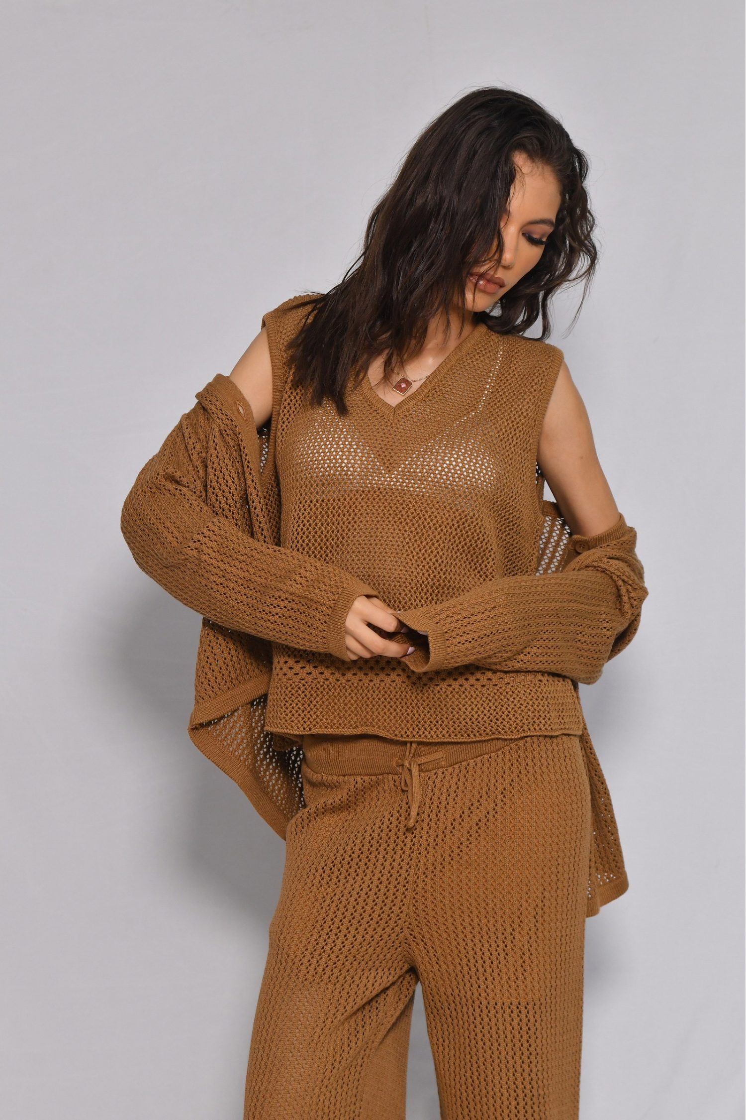 Ensemble 3 pièces en maille ajourée